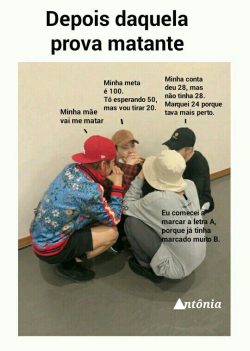 Aquele bate papo raiz perguntando como foi na prova no corredor do colégio…